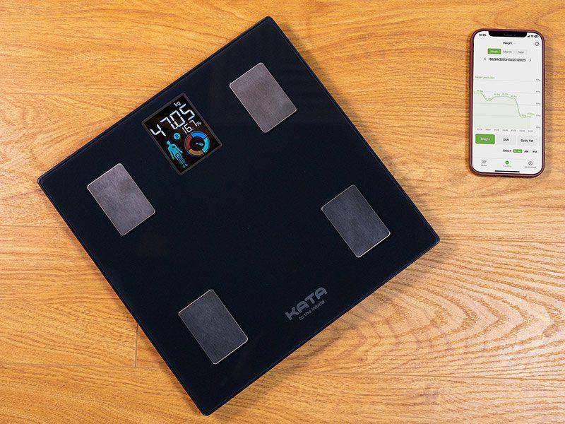 Cân sức khỏe điện tử KATA CS20M ghi điểm nhờ được trang bị kết nối Bluetooth và đồng bộ với ứng dụng Feelfit trên điện thoại. Ứng dụng này cho phép lưu lại toàn bộ số đo sau mỗi lần cân và so sánh sự thay đổi theo thời gian, gợi ý kế hoạch tập luyện chuyên nghiệp dựa trên dữ liệu cơ thể. Bạn cũng có thể dễ dàng đặt mục tiêu cân nặng cá nhân để CS20M và Feelit trở thành người bạn đồng hành trên hành trình chăm sóc sức khỏe, vóc dáng.
